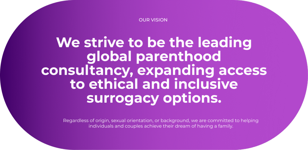 We strive to be the leading global parenthood consultancy, expanding access to ethical and inclusive surrogacy options. Regardless of origin, sexual orientation, or background, we are committed to helping individuals and couples achieve their dream of having a family.