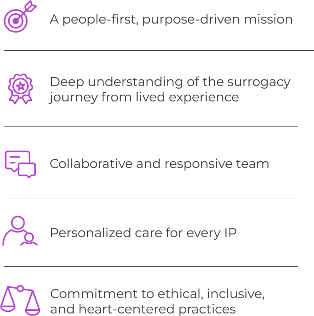 We’re proud to collaborate with fertility clinics, surrogacy agencies, legal experts, mental health professionals, and others to provide a seamless and supportive experience for every Intended Parent.